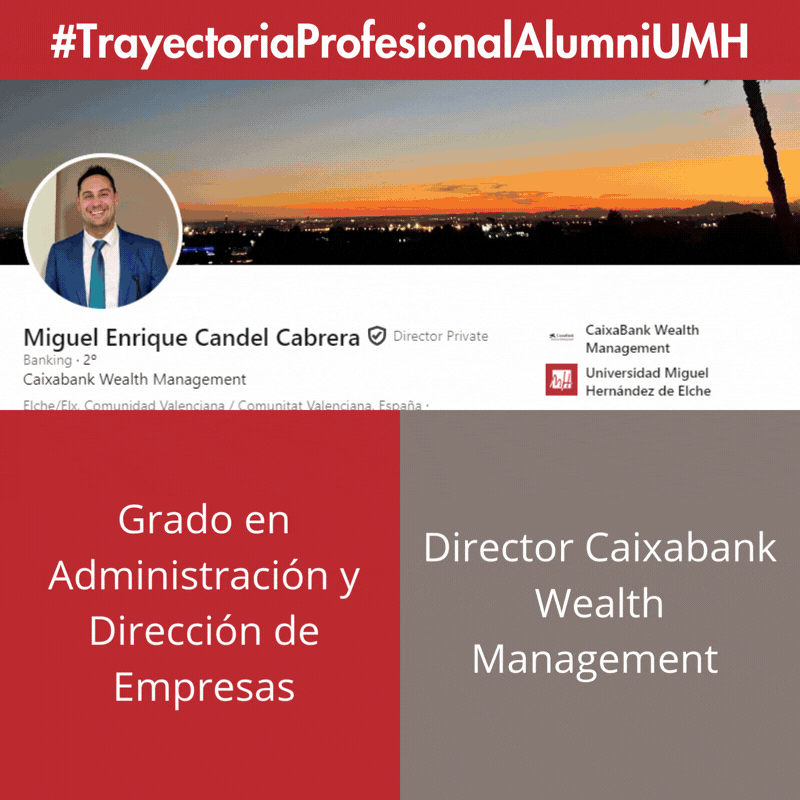 En Alumni UMH nos enorgullece acompañar y mantenernos cerca del desarrollo y los logros profesionales de quienes forman parte de nuestra comunidad. Mediante la sección #TrayectoriaProfesionalAlumniUMH, difundimos y celebramos los logros y avances más destacados de nuestros Alumni UMH en sus diversos ámbitos laborales.